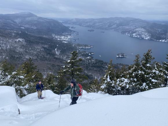 Cook Mountain Preserve is located just south of the hamlet of Ticonderoga on the west shore of Lake Champlain. The 192-acre preserve is owned by the Lake George Land Conservancy. From the sign-in register at the trailhead on Baldwin Road we begin our hike on a wide flat path and continue past an abandoned beaver pond, now a pretty wetland. From here we join the trail that will take us to the top - climbing steeply for the next half mile, gaining nearly 700', to the mountain's ridge where it climbs more gradually for the last .6 miles. Before continuing to the end of the ridge and our lunch spot, we will take a short spur trail to an overlook where we will be able to see Lake George, Lake Champlain, and the Green Mountains. After a short stay we continue to the end of the ridge for more expansive views of Lake George including Record Hill, Anthony's Nose and Rogers Rock. Bring your spikes. Total distance is estimated to be about 3 miles with a gain of 900'. After the hike everyone is welcome to venture to the Powell's home in Hague to share cookies and cheer (bring cookies and cheer!) and, time and energy permitting, those that are interested can take a short walk from the Powell's home to a lovely overlook of Lake George's Hague Bay. WCMC overflow lot at 8:45 for departure at 9:00 or, by advance arrangement, Exit 24 at 9:20 or the trailhead at about 10:10.